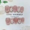 A soft and elegant handmade press-on nail set in shimmering pink with a subtle cat-eye glow. The almond shape creates a graceful, elongated look, while the fine glitter adds a gentle sparkle without overpowering the design. Full-cover, lightweight, and reusable—perfect for everyday wear, romantic dates, or anyone who loves a simple, feminine manicure with a luminous finish. ✨🌸