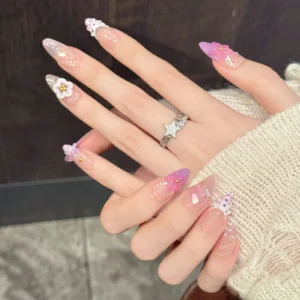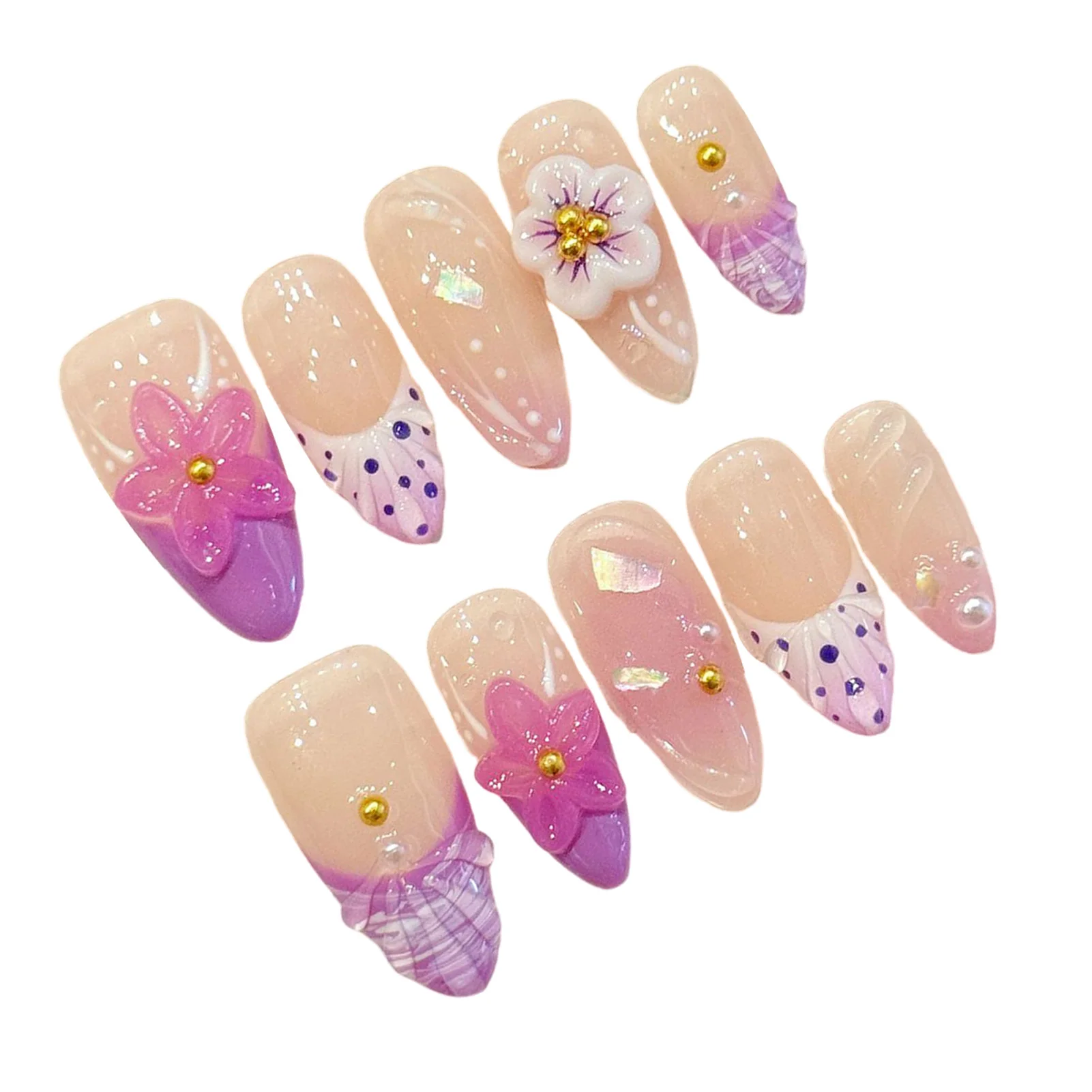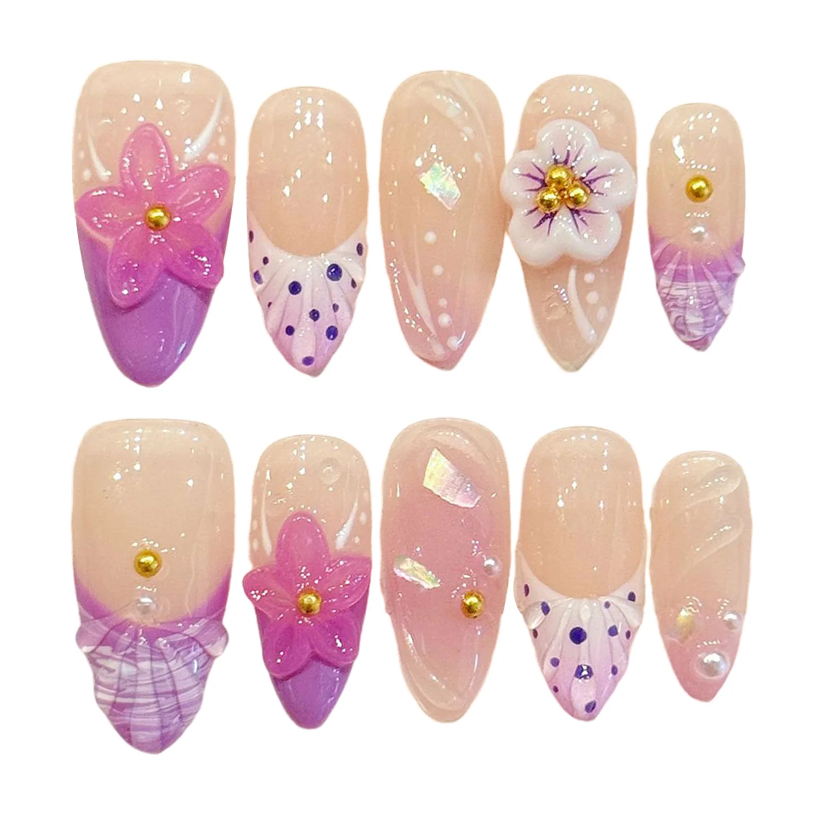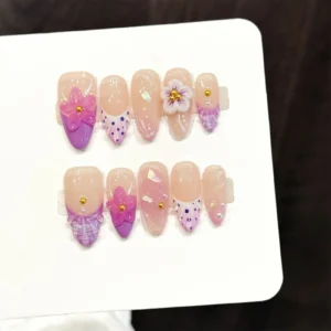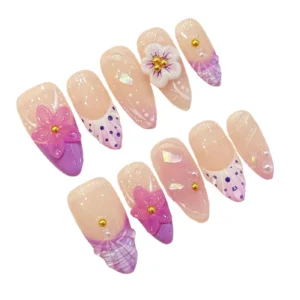Transport yourself to a sun-soaked getaway with the “Gentle Girl” series, a 10-piece collection that perfectly balances soft femininity with a tropical flair. This set features a dreamy fusion of pastel pink and lavender-purple tones, accented by a summer-inspired French style that feels light and airy. The standout feature is the intricate 3D relief floral work, which creates a stunning tactile effect that mimics the lush blooms of a coastal island garden.