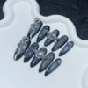 Elevate your aesthetic with this ultra-modern, hand-crafted press-on nail set. Combining galactic themes with industrial metalwork, these nails are designed for those who want to bridge the gap between “coquette” and “cyberpunk.”