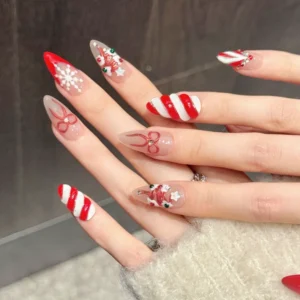 3D Sculpted Accents: * Candy Cane Swirls: Features bold, raised red and white 3D diagonal stripes that mimic the texture of a traditional candy cane.