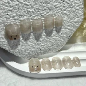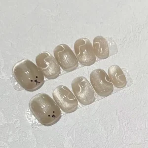 Add a touch of everyday sweetness to your look with Puppy Heart, a 10-piece handmade short press-on nail set crafted for cute, effortless charm. Featuring shining cat-eye shimmer, tiny hearts, and an adorable puppy motif, each nail brings a soft, lovable vibe perfect for daily wear.