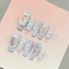 A sophisticated and festive set of 10 reusable press-on nails that beautifully captures the essence of a classic, elegant Christmas. This set utilizes rich textures and traditional colors, perfect for holiday events.