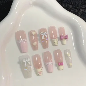 Lightweight, removable, and effortless to wear, these nails are perfect for everyday sweetness—whether you’re heading to class, a date, or simply want a clean, girly look. Sweet Bow blends simplicity and charm into a timeless, cute aesthetic your fingertips will love.