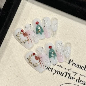Why You’ll Love It: The “Winter Sugar Plum” set is a beautiful and modern interpretation of holiday nails. It’s chic, sparkly, and captures the cozy, magical spirit of a snowy Christmas morning without being overly traditional.